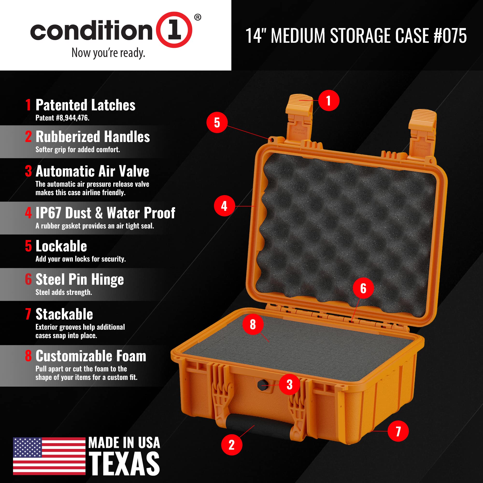 - MADE IN THE USA - The hard storage case is made from crush-resistant, virtually indestructible polypropylene copolymer and constructed in Texas, USA for maximum durability.